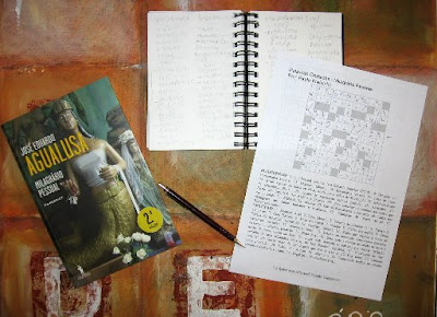 Na sempre difícil tarefa de reduzir as palavras anotadas durante a leitura (111 palavras) de modo a conseguir cruzá-las numa grelha 11x11, escolhi as seguintes: